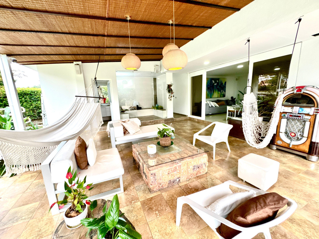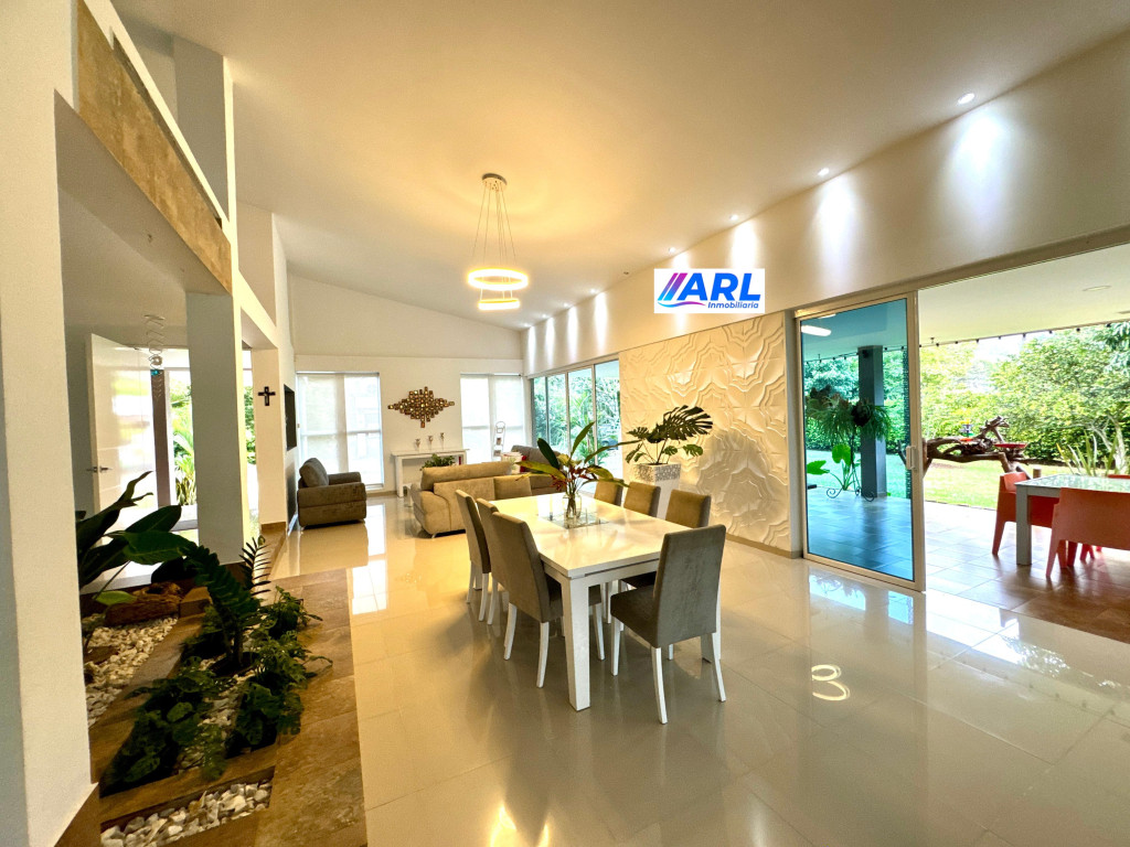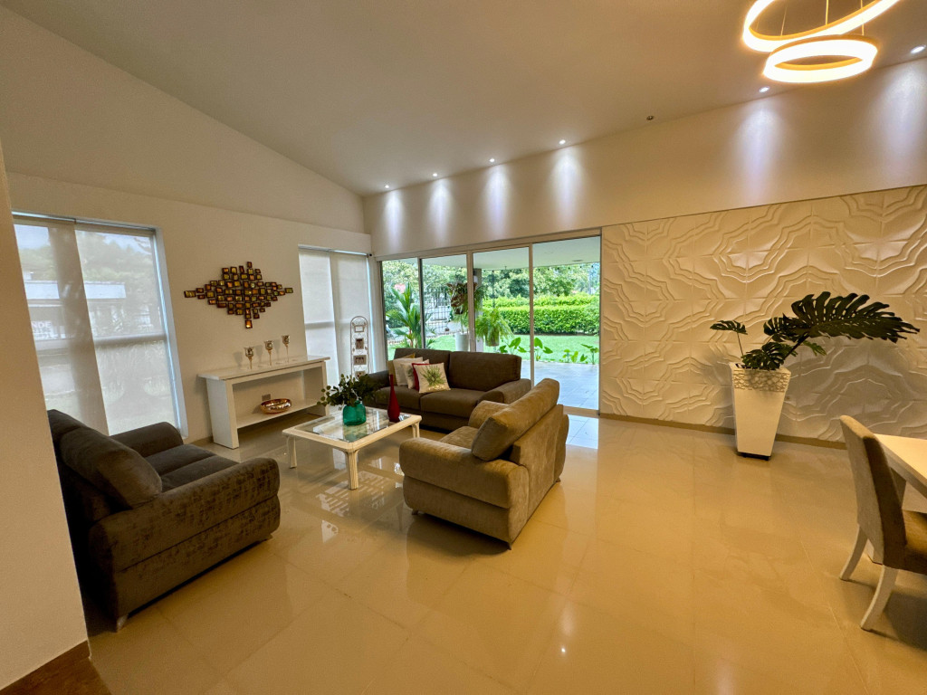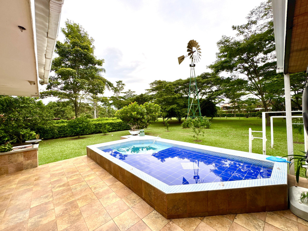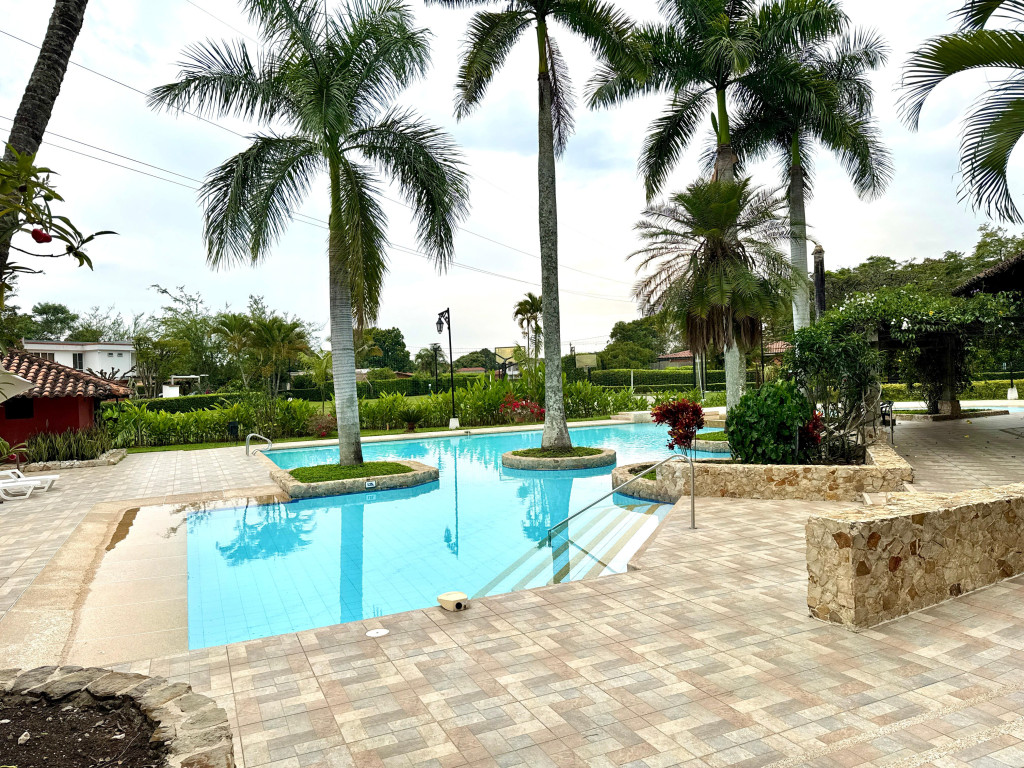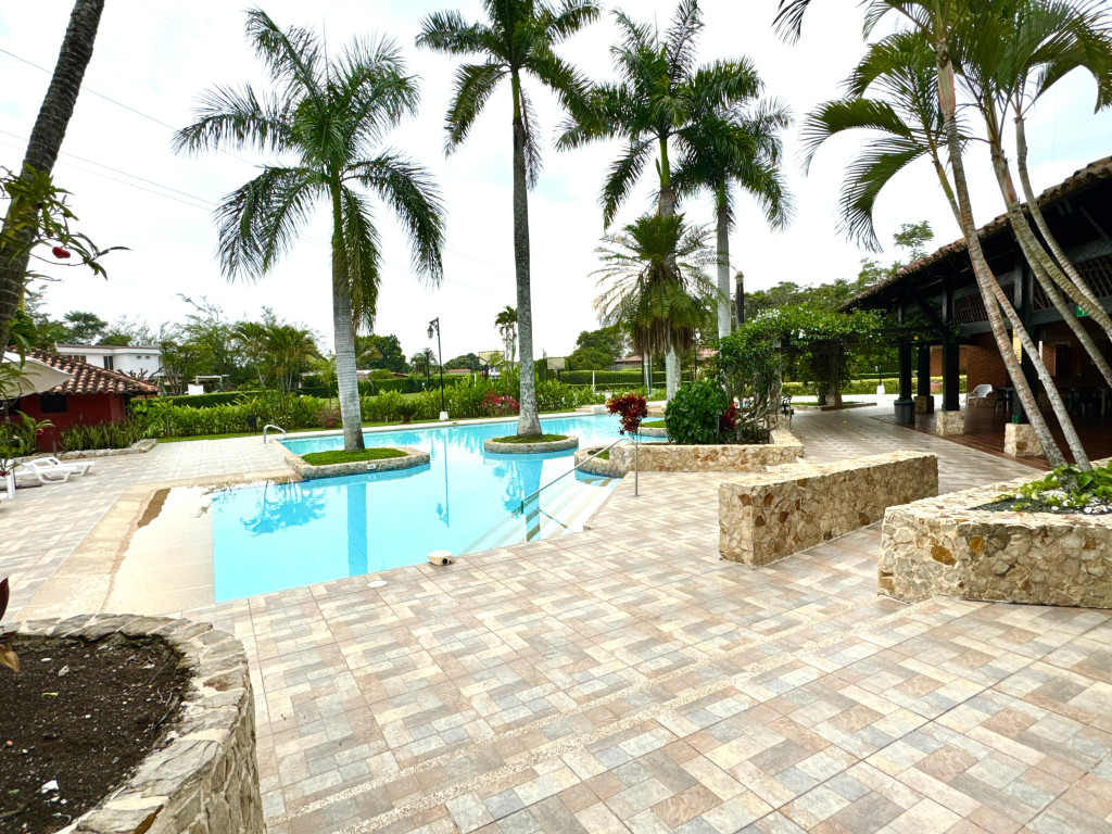 Casa Campestre , ubicada en Jamundí Valle del Cauca, en Conjunto Cerrado Riveras de las Mercedes , un lugar que ofrece zonas para la comunidad con amplias zonas verdes, lagos, piscina social con espacios agradables con la naturaleza, tiene zonas de esparcimiento de deportes : 2 canchas de de tenis, futbol, Squash, local de comidas, salón para realizar eventos . La Casa cuenta con varios espacios de esparcimiento , donde aflora la amplitud, zonas conectadas con la naturaleza del lugar, su distribución : Sala, comedor, star de tv, cocina con vista zonas verdes, comedor exterior, sala exterior, piscina con vista a la zona verde del conjunto y lago, turco. 3 habitaciones con su baño. En el segundo piso habitación principal con una excelente vista paisaje natural , Vestier. En el video se puede apreciar mucho mejor la casa. El sector es muy campestre, a 1 kilometro encontramos un pequeño mall de locales de servicios de panadería, café, entre otros, a 3 kilómetros aproximadamente tenemos el Mall del Éxito conocido anteriormente como alfaguara, donde encontraras : Supermercado, gimnasio Smart Fit, farmacias, restaurantes. En la Glorieta Estación de Servicio de Gasolina, Supermercado Ara, entre otros Malls. Administración 720.000 , informes Andrea Robledo +573187352965